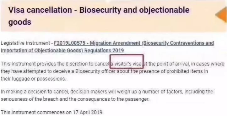鉴于这种风险,澳洲政府认为应该加强违规惩罚以阻止访客违反澳洲生物安全法。