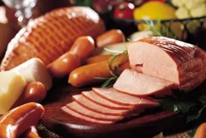整只咸鸭、鸭肝、鸭胃、鸭肠、家禽内脏、牛肉条、牛肉干、牛肉和猪肉丝、猪肉松、猪肉馅的月饼; 还有含有肉类的速食面、猪蹄、或者猪油渣;